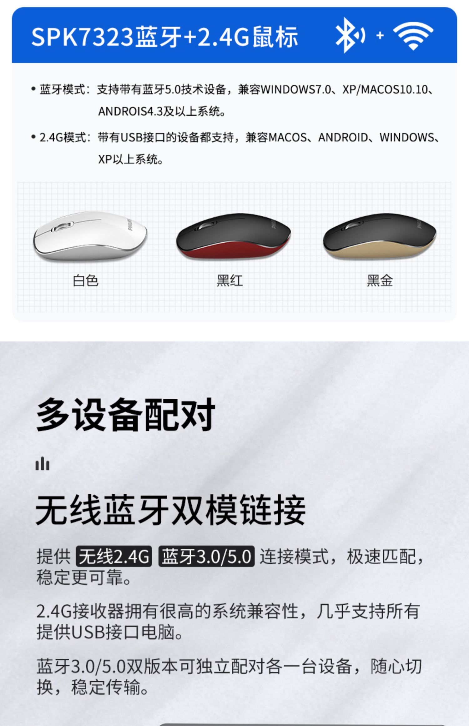 飞利浦无线型号:蓝牙鼠标成色:全新
